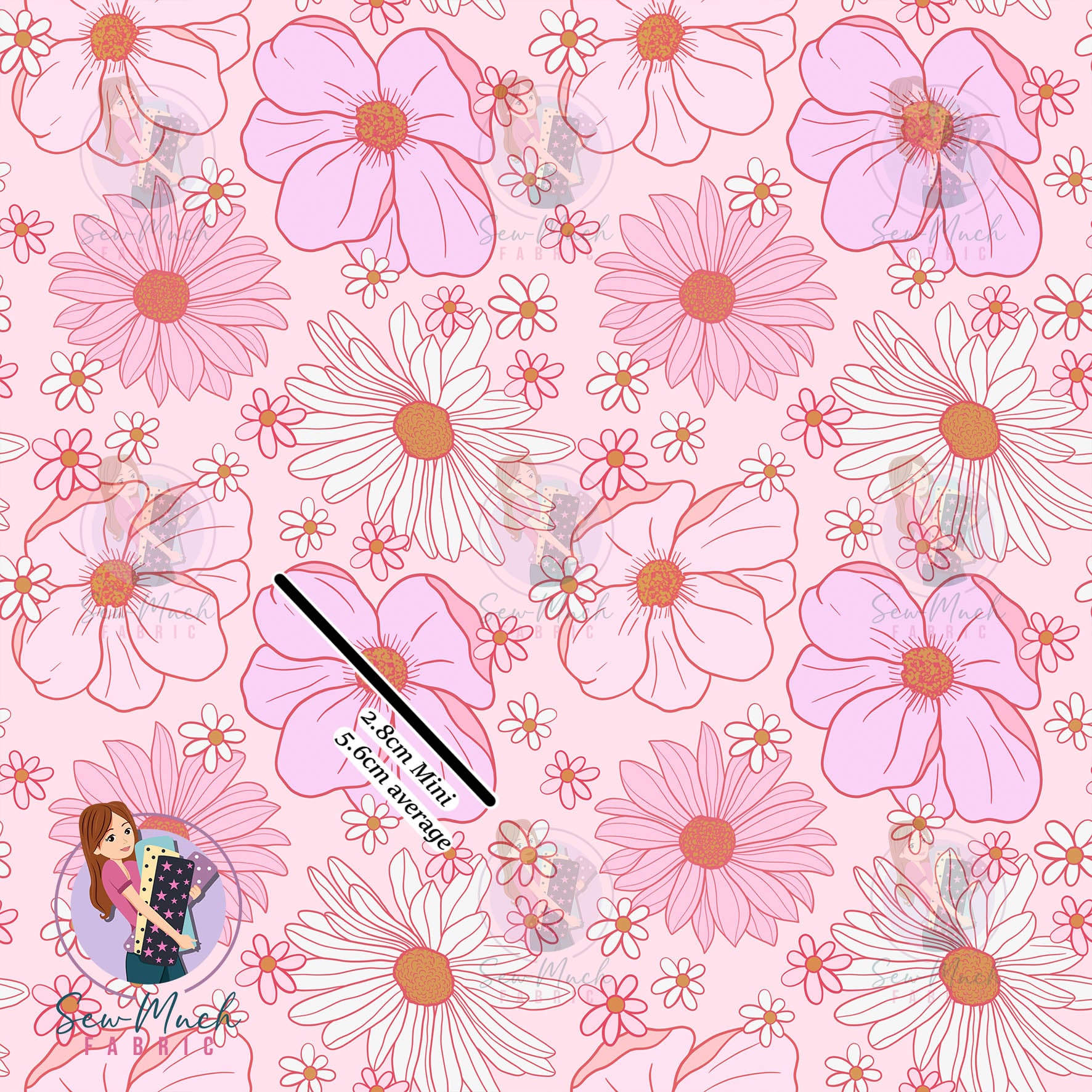 We offer 2 different print sizes: Average and Mini. Please refer to the product title to ensure you are ordering the correct size. Please note that the fabric scale is +/- 1cm