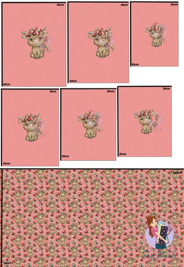 CHRISTMAS Pre-Order: Highland Cow Aussie Floral 'PANEL FOR ROMPERS'