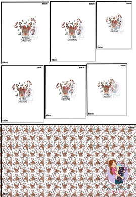 CHRISTMAS Pre-Order: Reindeer Bow First Christmas 'PANEL FOR ROMPERS'