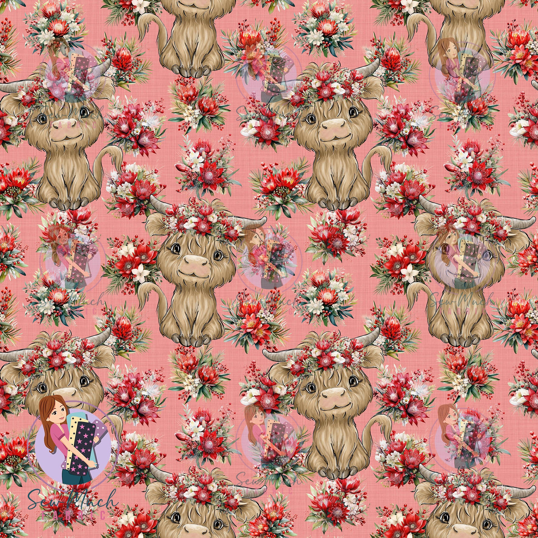 Christmas: Highland Cow Aussie Floral | Woven | Retail | Average Scale
