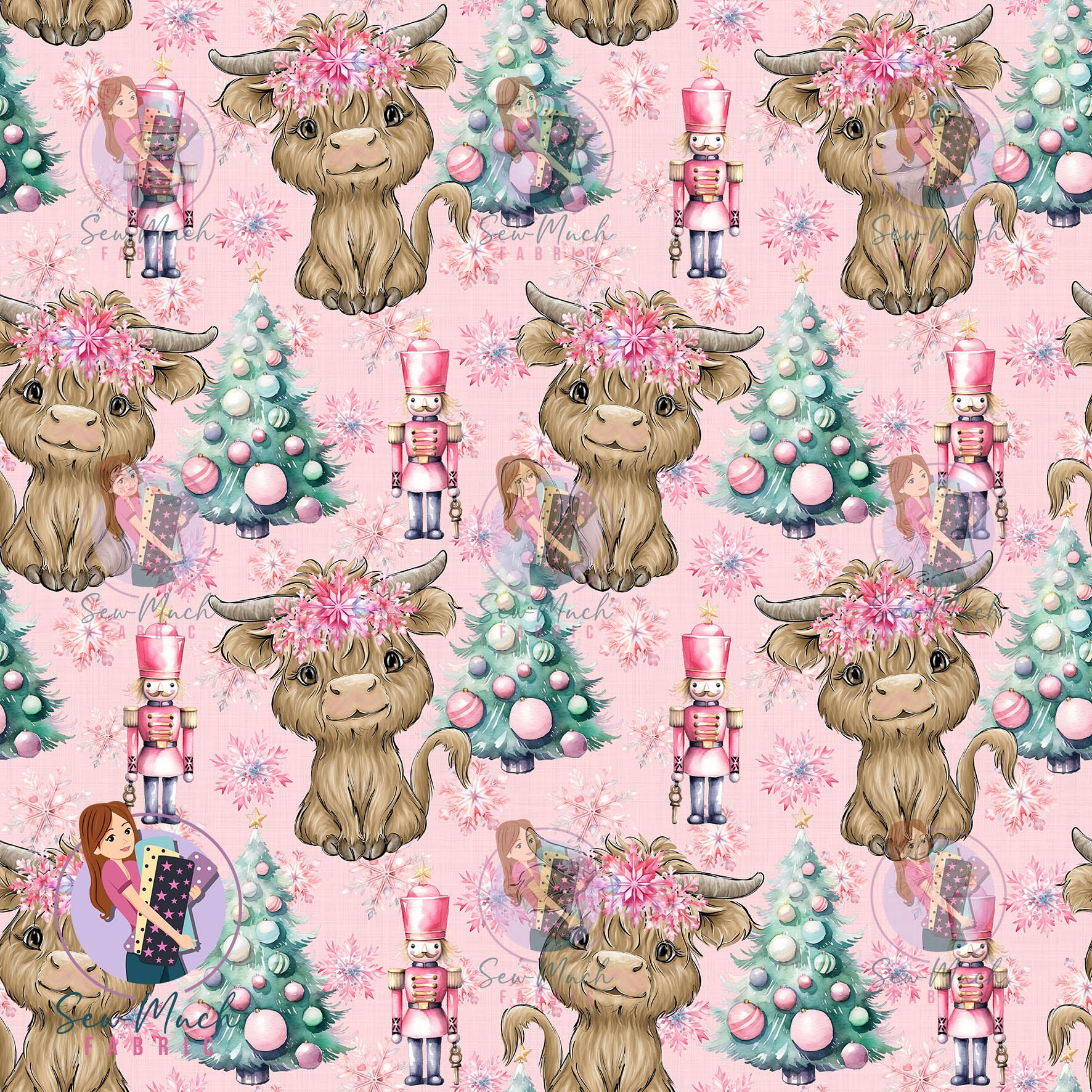 Christmas: Highland Cow Pink | Woven | Retail | Average Scale