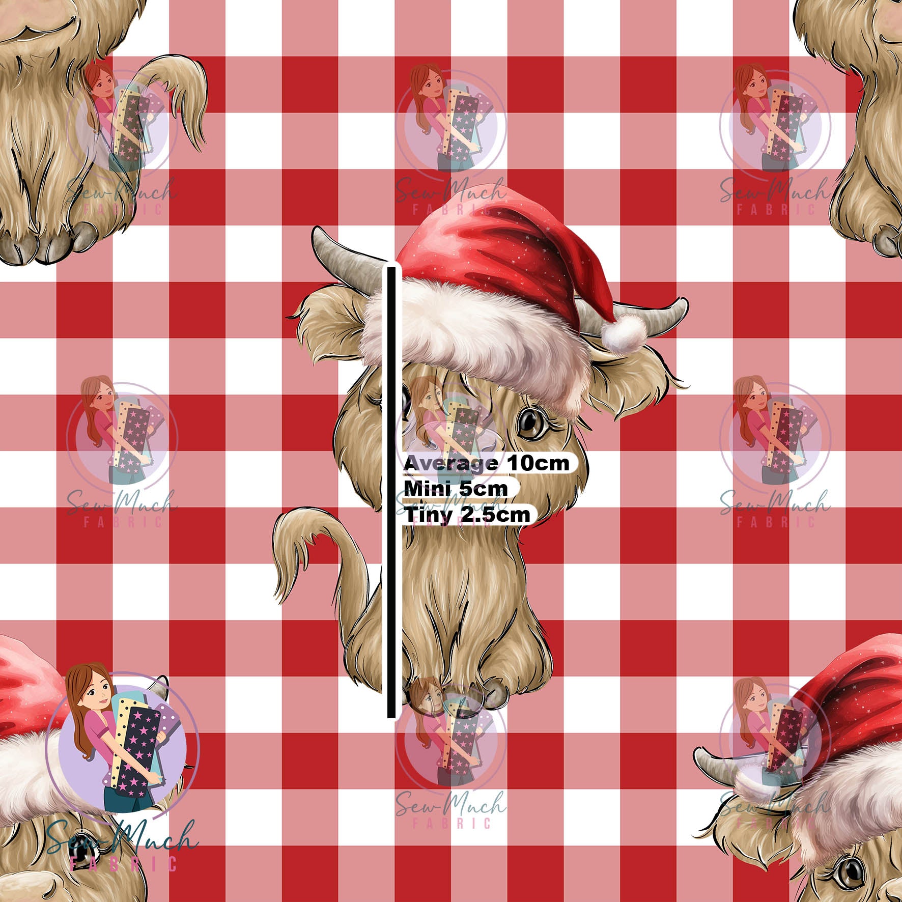 Christmas: Highland Cow Red Gingham | Woven | Retail | Average Scale