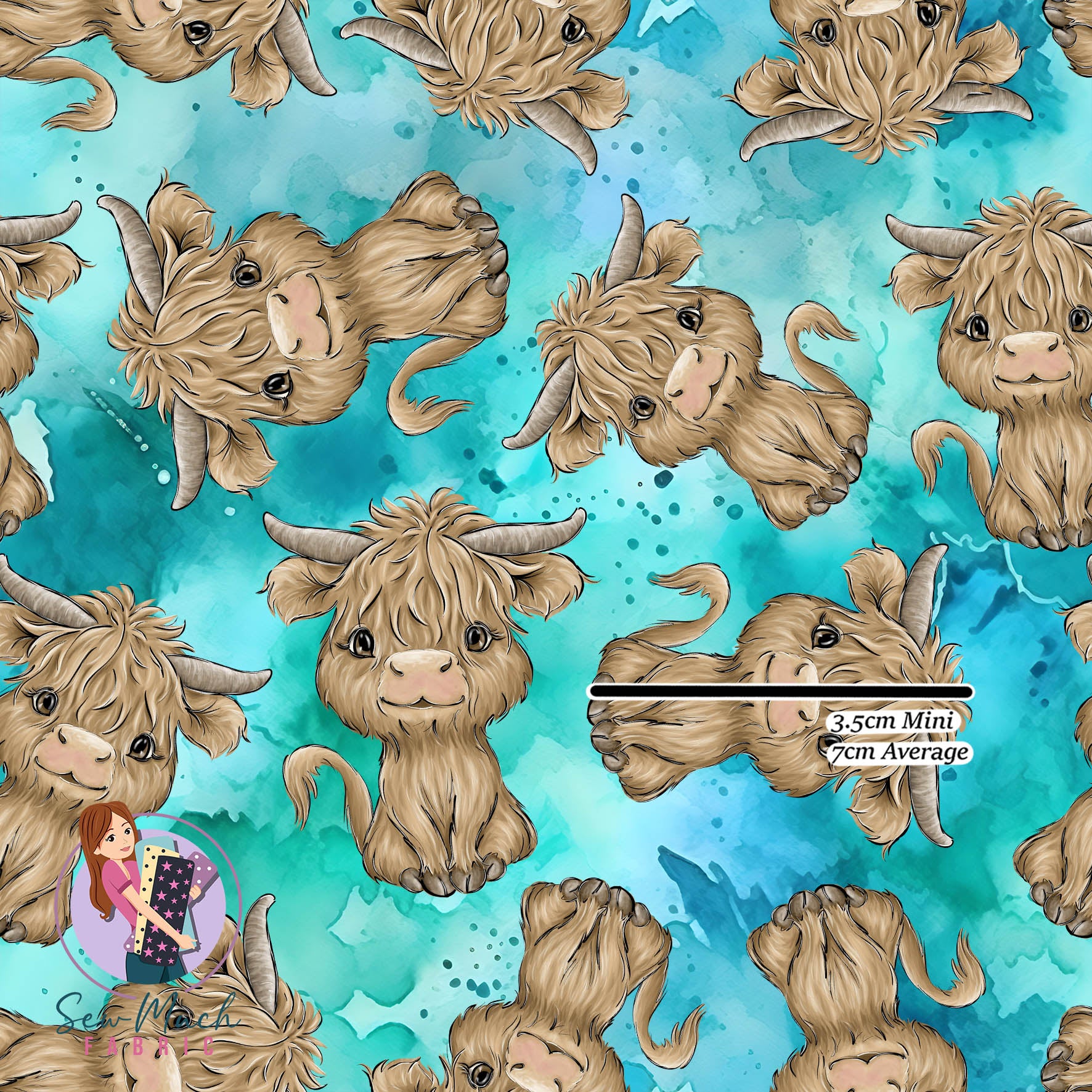 Highland Cow Aqua | Woven | Retail | Average Scale
