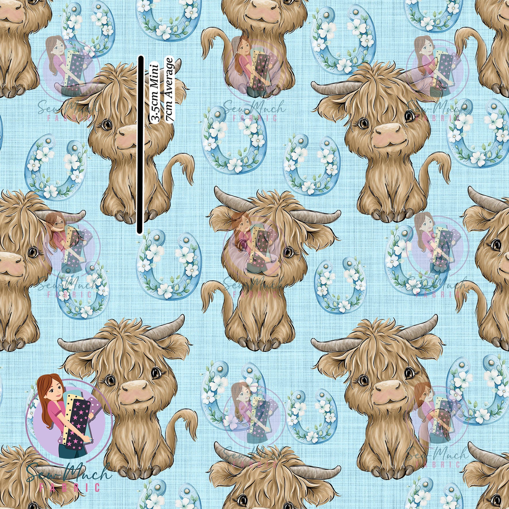 Highland Cow Blue Horseshoe | MINKY | Retail | Average Scale