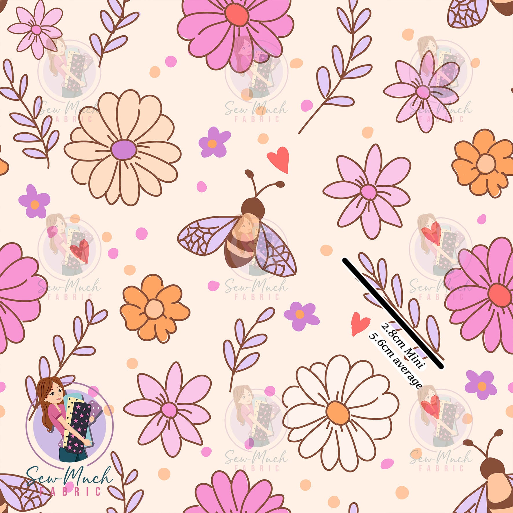 We offer 2 different print sizes: Average and Mini. Please refer to the product title to ensure you are ordering the correct size. Please note that the fabric scale is +/- 1cm