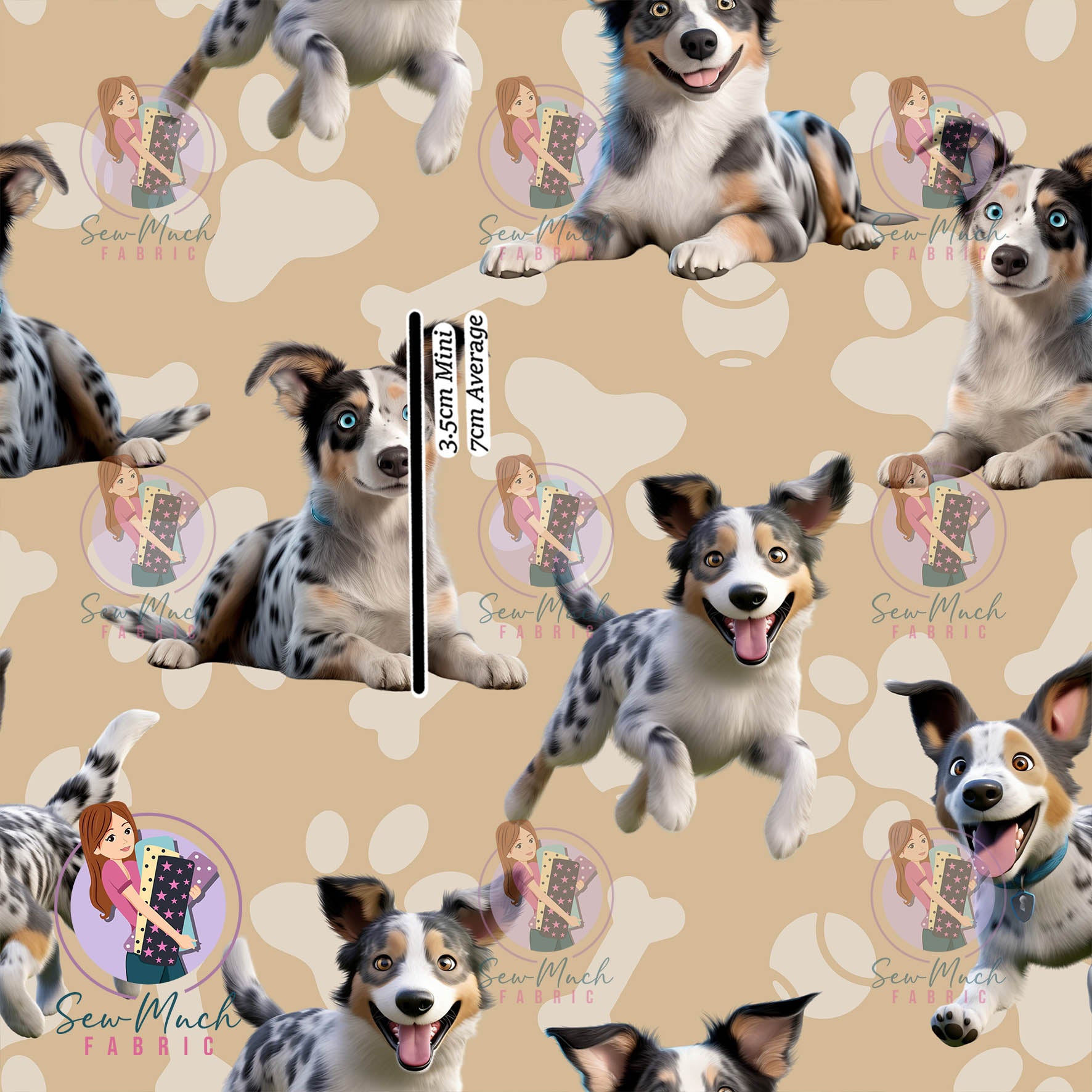 We offer 2 different print sizes: Average and Mini. Please refer to the product title to ensure you are ordering the correct size. Please note that the fabric scale is +/- 1cm